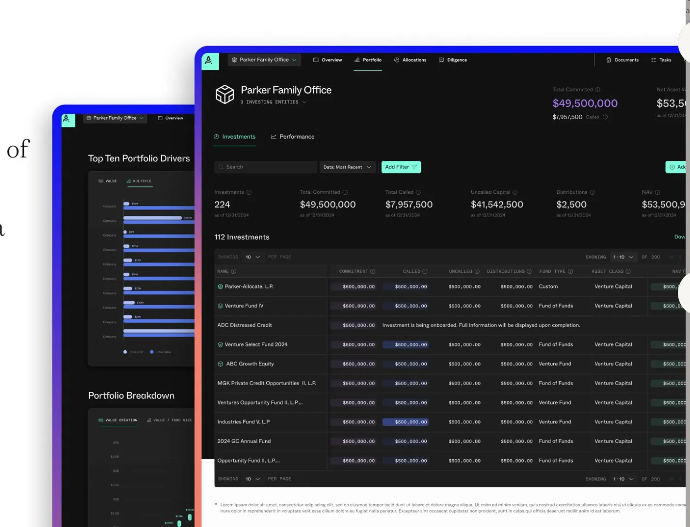 Beyond this, managing a private investment portfolio effectively is a significant challenge. Building a well-constructed portfolio, tracking investments and gaining key insights, and ensuring that new opportunities align with an investor’s evolving goals is nearly impossible without a structured, data-driven approach.